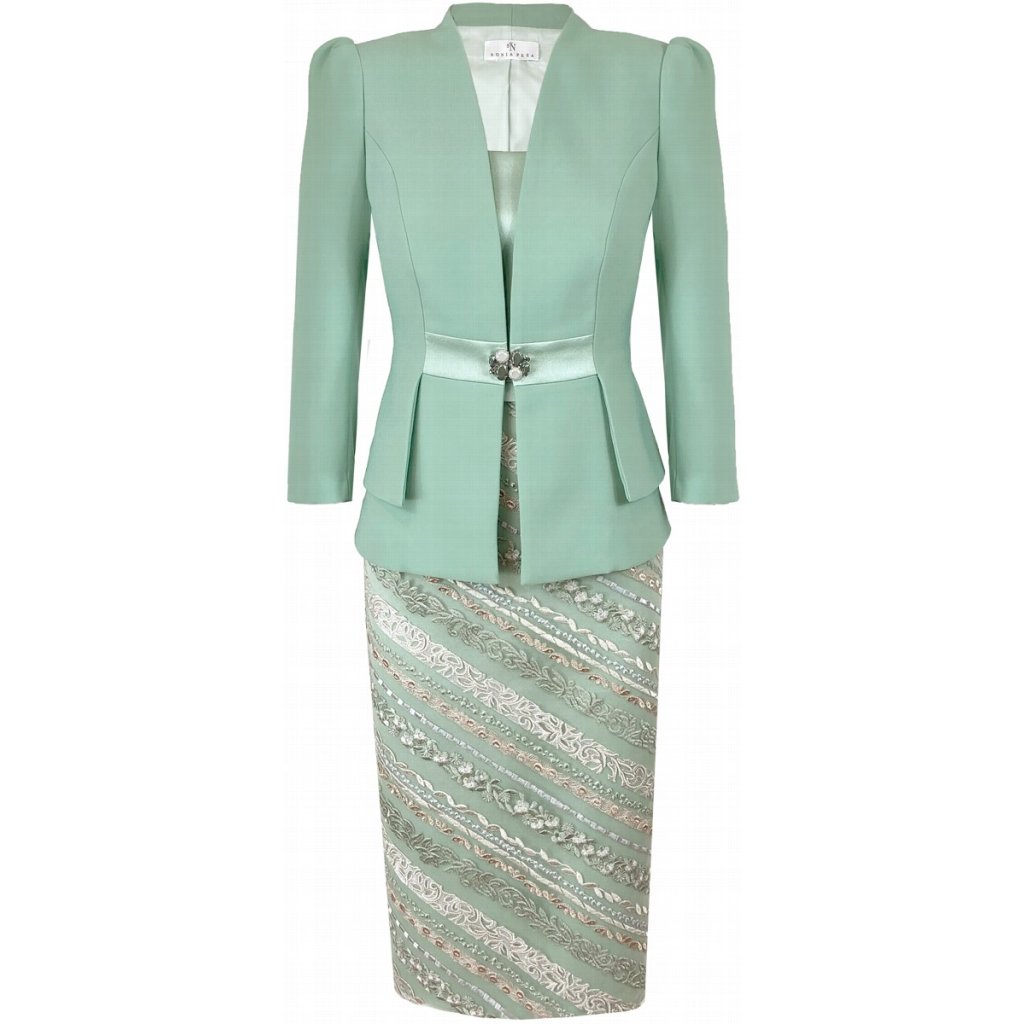 Skvelý kostým pre svadobné mamy Sonia Peña 1240027 z kolekcie Zanzibar prémiovej španielskej značky Sonia Peña. Pozostáva zo šiat s krátkym rukávom a saka. Elegancia a dokonalé vypracovanie spolu s kvalitou použitých materiálov stoja za celosvetovým úspechom značky Sonia Peña, ktorú v Bratislave nájdete v Svadobnom salóne Weda. Ihneď k odberu máme veľkosť 42 v zelenkavej farbe.