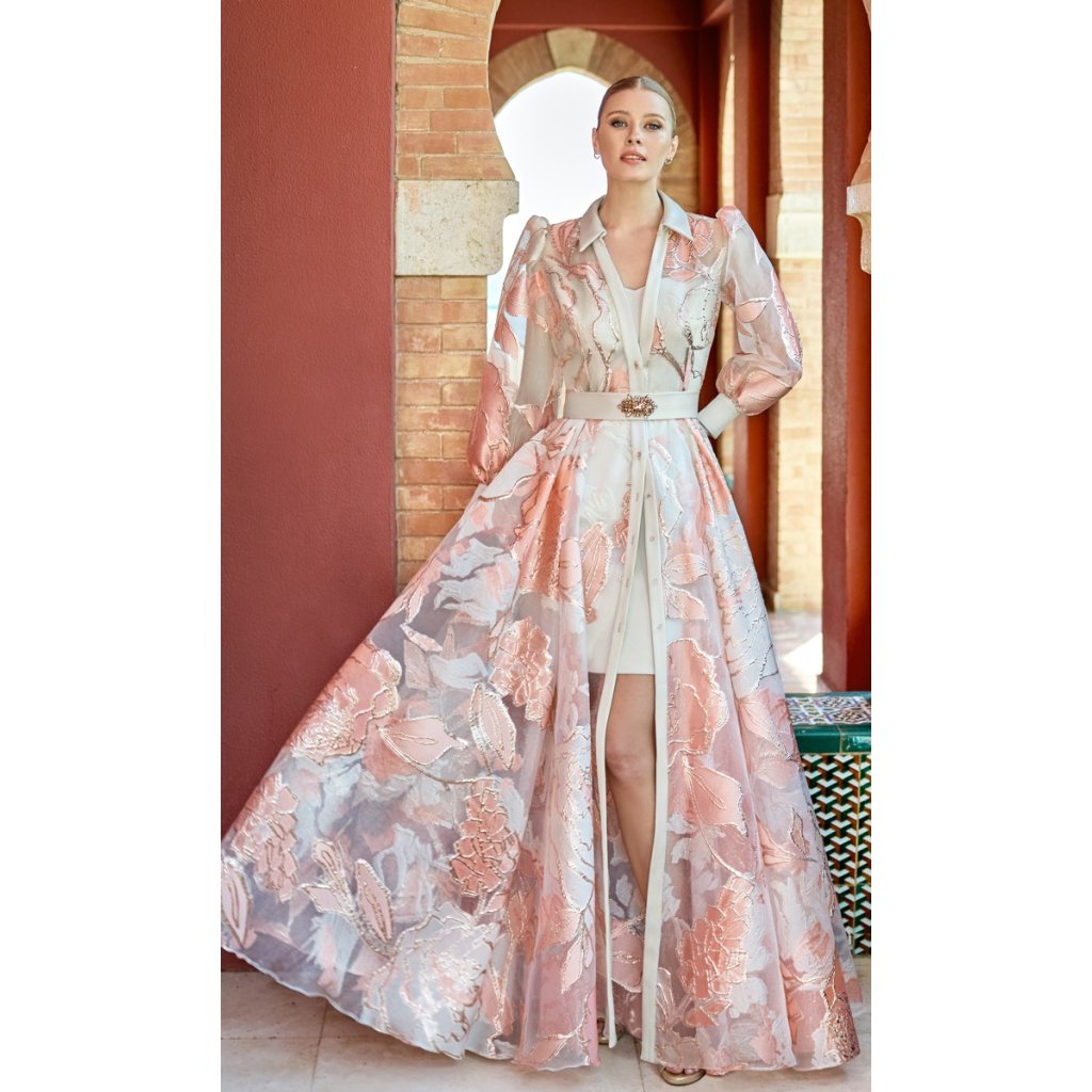 Luxusné dvojdielne lososové šaty 1261006 z kolekcie Couture prémiového španielskeho výrobcu Sonia Peña. Komplet pozostáva z midi šiat z hladkého krepového saténu a dlhých košeľových šiat z úchvatnej vzorovanej organzy, doplnených zdobeným opaskom. Elegancia a dokonalé vypracovanie spolu s kvalitou použitých materiálov stoja za celosvetovým úspechom značky Sonia Peña, ktorú na Slovensku kúpite v Svadobnom salóne Weda v Bratislave . Skladom a ihneď k odberu máme veľkosť 40, vo farbe ako na obrázku.