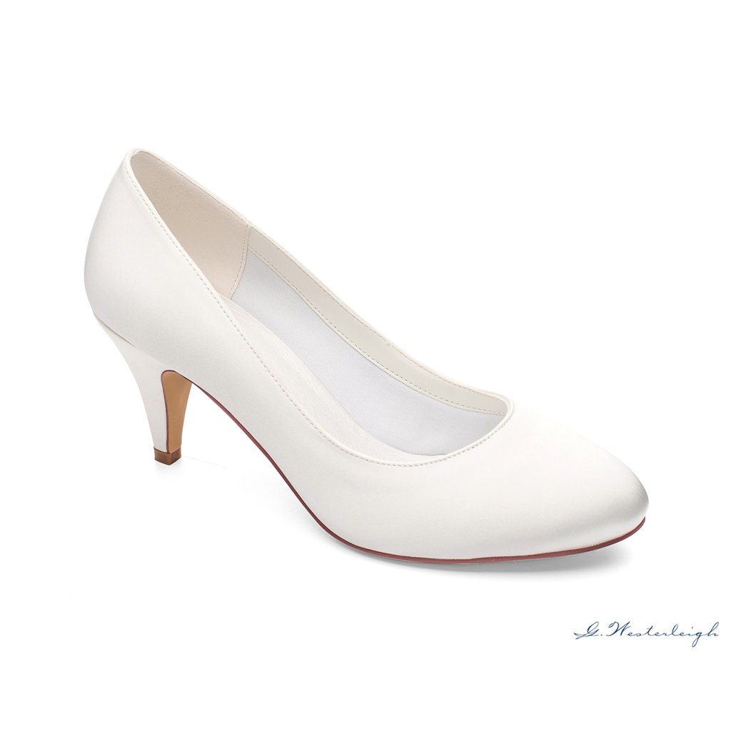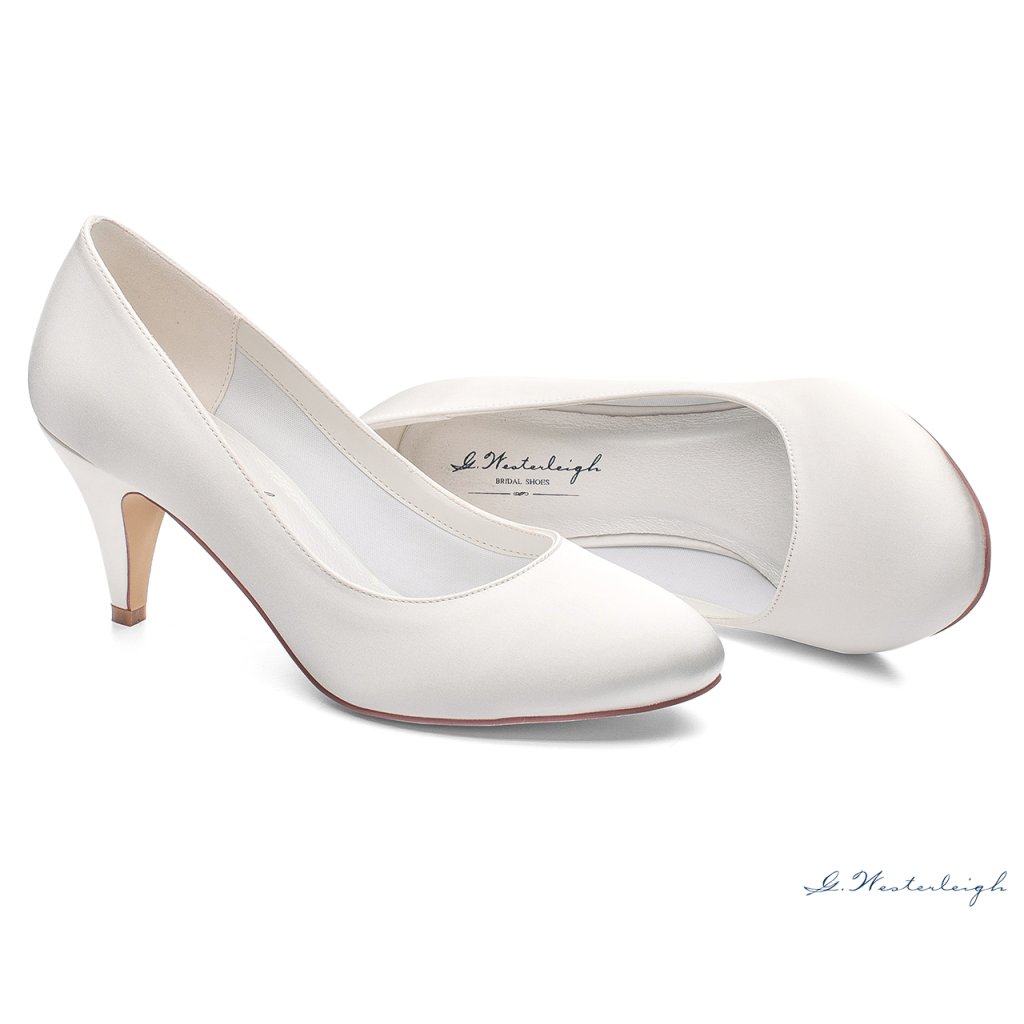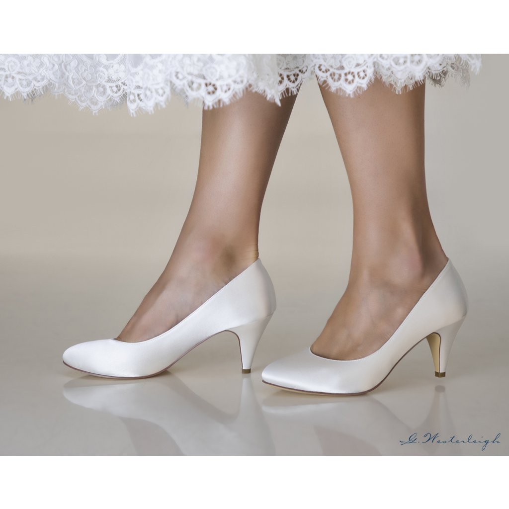 Nadčasové elegantné saténové svadobné lodičky značky G. Westerleigh. Výška podpätkov 6 cm. Špeciálna skrytá penová výplň a extra mäkká stielka pre pohodlie i pri dlhodobom nosení. Dodávame v bielej i ivory farbe a vo veľkostiach od 35 do 41. Aj tieto topánky z našej ponuky si môžete vyskúšať v Svadobnom a spoločenskom salóne Weda na Námestí SNP 2 - Obchodnej 6 v Bratislave.